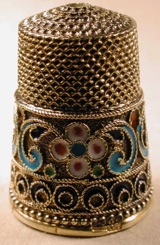 Early 18th century Staffordshire thimbles and some Iranian thimbles were entirely enamelled rendering them pretty unsuitable for sewing and thus were most probably made as ‘keepsakes’ (Fig 66).