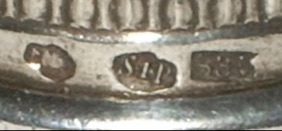 A silver thimble (Fig 18) with a stone top and inside gilding and probably made in Finland, has 800 stamped inside the top and the Estonian quality mark (Fig 19) stamped on the side,