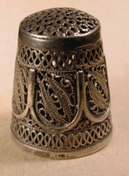 Recently we successfully bid for a filigree thimble on Ebay. The thimble duly arrived and we were amazed with the fineness of the work and the skill utilized by the maker to craft such a fine piece of ‘art’. We decided to further investigate filigree thimbles, their dates of manufacture and their countries of origin.