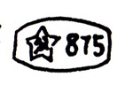 Fig 42. A silver mark (875), hammer and sickle inside a five-pointed star, after 1958. The photograph is of a similar mark but has an unclear assay office mark (r).