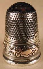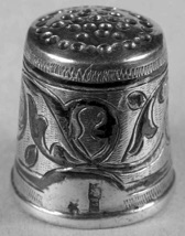 This early 19th century thimble (Fig 56) was made by Victor Finnikov (B.Ф) in Saint Petersburg. It is without additional decoration and dimpled down to the plain flat rim.