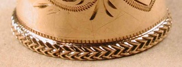 Two Royal rims have been made on different sides of the Atlantic Ocean. The Louis XV rim is to be found on some American thimbles (Fig 80), and the embossed Louis rim was invented by Charles Horner of Halifax (Fig 81).