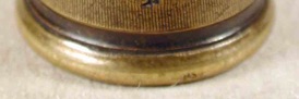 Turning the lowest edge of the thimble back upon itself results in a turnover rim. This is probably the commonest type of rim seen by collectors. The simplest form of turnover rim is a flat turnover rim (Fig 75). The turnover process may result in a rounded rim the so-called round turnover rim (Fig 76) and sometimes this turnover rim may itself be decorated, a decorated round turnover rim (Fig 77).